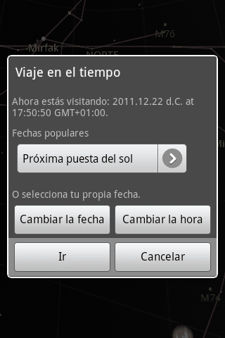 Google Sky Maps permite conocer la situación del cielo en cualquier momento, es decir, podemos saber la posición del sol (o de la luna en fotografía nocturna) a una hora determinada gracias a su función viaje en el tiempo. Esta opción nos permite ver el cielo en la próxima puesta del sol o en una fecha introducida por nosotros y comprobar así que la luna está donde queremos y que la hora es la adecuada.